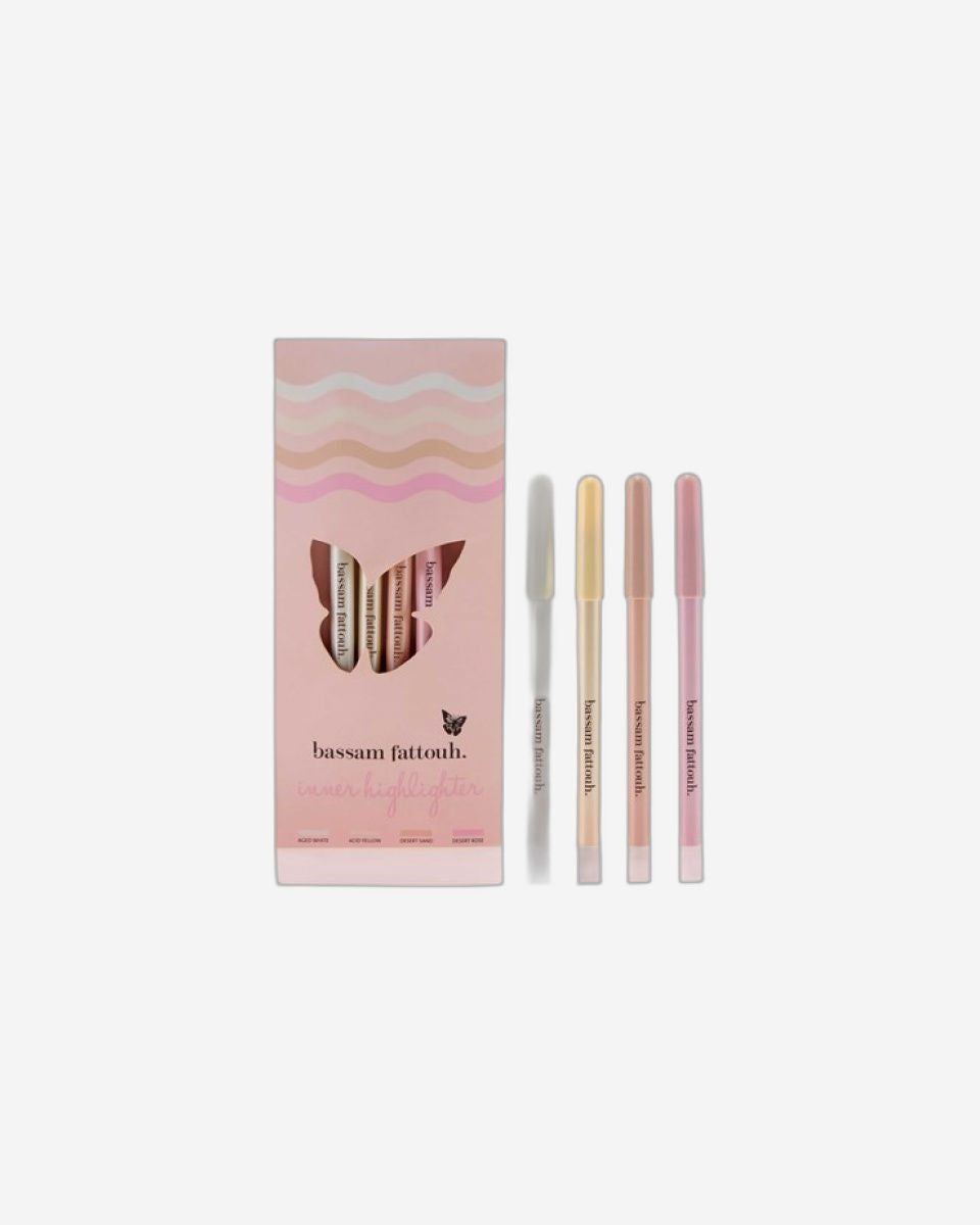 Multi Color Bassam Fattouh Inner Highlighter Pencils-SETS OF 4 PIECES and 4 color; Desert Rose, Desert Sand, Acid Yellow and Aged white.
