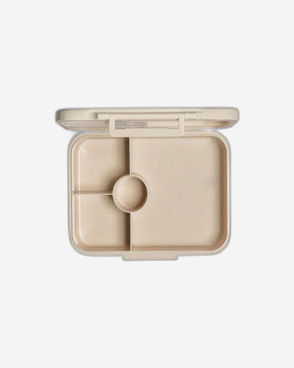 + Stores food in 4 separate compartments, in bento lunchbox style