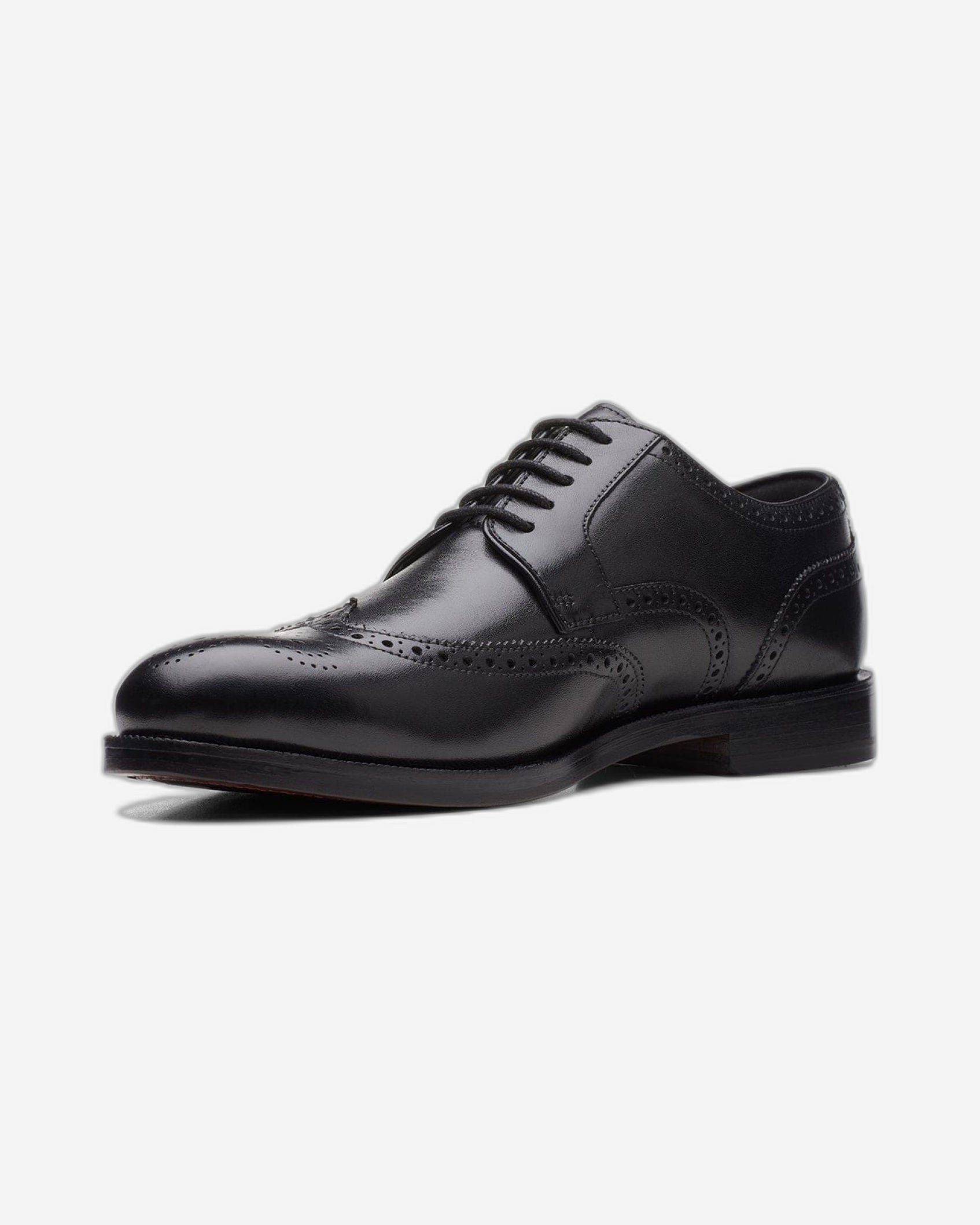 Clarks Craftdean Wing Shoes - Black Leather - 261691837 - G Width (Standard Fit)
